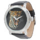 Fierce Puissant Leopard Roaring portrait d'attaque gros avec de longs crocs. Illustration vectorielle originale isolée sur blanc Copyright BluedarkArt TheChameleonArt.