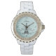 Sachez toujours l'heure avec une montre Turquoise Tour Eiffel Flourish. Le design de la montre présente un arrière - plan ondulé et dynamique avec la Tour Eiffel ornée d'élégants fleuris et d'espace pour personnaliser avec votre nom. Des couleurs supplémentaires sont également disponibles avec ce design. Contactez-moi directement si vous avez besoin d'aide pour la personnalisation.