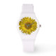 Le joli Sunflower Wrist Watch est une excellente idée cadeau pour un amoureux des fleurs, jardinier ou fleuriste. Cette pièce botanique à l'ancienne est ornée d'une photo florale d'un tournesol jaune fleuri d'un arrière - plan blanc.