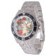 Cette montre pour hommes a un design Bauhaus de triangles arrondis dans les couleurs épicées d'or, brun, rouge, betterave, mer, tan et blanc cassé. Comme ce design mais veulent des couleurs différentes ? Message-moi.