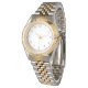 This timepiece masterfully blends the cool sophistication of brushed silver with the warm luxury of polished gold-tone links, creating a versatile accessory that transitions seamlessly from the boardroom to a weekend evening out.