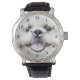Tzu blanc shih face avec un sourire joyeux grin ou une montre amoureux des chiens au poignet