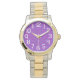 Cette montre pour femmes a un design Boho de vagues violettes et turquoise sur un champ de violet clair.