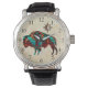 C'est un "One of a Kind" unique Southwest Buffalo Watch! Il est doté d'une silhouette et d'un soleil de Buffalo Sud-Ouest en Turquoise, Orange et Noir sur un Arrière - plan de grès Tan! Design D'Art Original Par L'Artiste Kerry Miller.