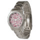 Cette montre pour femmes a un motif répétitif d'ovales en violet rétro avec des ovales blancs éparpillés le tout sur un champ de blanc.