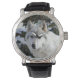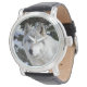Loup de bois, un visage gris à blanc très clair sur une montre au poignet