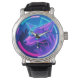 Montre Visage Futuriste de Loup de Néon dans l'art géomét