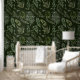 Geniet van dit sfeervolle en uitnodigende ontwerp met waterverf gebladerte en varens in donker jachtgroen.