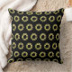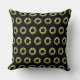 Elegant geel met rode tonen Zon op zwart Sierkussen. Zonneontwerp met draaiende stralen!