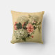 Dit mooie kussen heeft een oogstbeeld van een hydrangea en roze anjers bouquet. De vloeiende witte hydrangeas omringt en accentueert de twee gebrande roze anjers met een licht groen foliezakje. Het afbeelding ziet eruit als een oude chintz. Het bevindt zich op een sepia tan achtergrond.