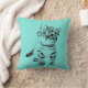 Knuffelige baby kat, handgetekende zwarte inktpen schets kat blauwe kussen