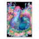 Een levendig gekleurde kip nestelt zich tussen wijnbloemen en bladeren.