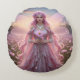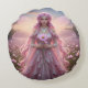 Een mooie fee met een vloeiende roze jurk en een ketting gemaakt van opalen met opalen en kosmos bloemetjes in haar lange roze haar en lichtroze libel-achtige vleugels met een roze kosmos bloem staat in een magisch veld van kosmos bloemetjes omringd door bubbels tegen een middaghemel.