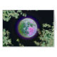 Een unieke kleur- en textuurbehandeling van de bijna volle maan in de vroege avond, zoals gefotografeerd door boomtakken. Het gemengde media ontwerp geeft een unieke kijk en een uniek gevoel.