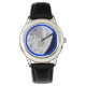 Moon, roestvrijstalen horloge van Kind met zwart lederen band en blauwe cijfers