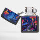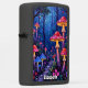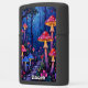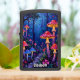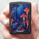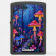 Dit schilderij toont een magisch bos 's nachts, waar een kronkelend pad wordt verlicht door een collectie van gloeiende paddenstoelen. Het kunstwerk wordt gekenmerkt door zijn zware impasto-textuur, met dikke, wervelende penseelstreken die een droomachtige en levendige sfeer creëren. Het bos is gevuld met torenhoge bomen en een volle maan schijnt in de diepblauwe lucht. Het pad is bekleed met schimmels van verschillende groottes en kleuren, waaronder rood, blauw en sinaasappel, afgewisseld met kleurrijke bloemen en weelderig gebladerte.