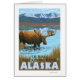 Moose Drink in Lake - Denali National Park , het AK - Vintage Travel Poster werd in 2007 opgericht . Dit afbeelding toont scènes van het nationale park van Denali, AK.