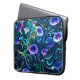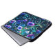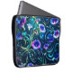 Levendige blauwe en paarse ochtendgloriebloemen verstrengelen met weelderige groene bladeren en kolkende pezen tegen een donkere achtergrond. Het samenspel van licht en schaduwen geeft de compositie een lichtgevende kwaliteit, met de nadruk op de ingewikkelde details en diepte van het bloemontwerp.