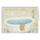 © Veronique Charron/Wilde Apple. Een afbeelding van een ontspannen badkamer met een witte badkuip. Er is een bruine badkuip met slakken, zeesterren en schelpdieren.
