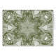 Ce mandala blanc est posé sur un arrière - plan de mousse foncée ou vert olive. Les couleurs sont harmonieuses et équilibrées. Partie de la collection Howlsplann Mandala.