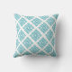 Clé géométrique tribale et coussin à motifs découpés en angle dans un bleu et blanc d'eau vive. Conçu par Sarah Trett. Très bien situé dans une chambre, un salon ou un salon de jardin.