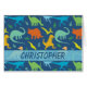 Het kleurrijke patroon van Dinosaur silhouette dat u uw eigen naam kunt personaliseren en toevoegen. Tyrannosaurus Rex, titanosaurus, Triceratop, raptors, Ankylosaurus, Dino-Birds, Stegosaurus, Apatosaurus, Pteranodon en meer in een kleurrijk patroon op blauwe achtergrond, en dinosaurussen in groen, blauw, geel en oranje.