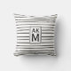 Coussin personnalisable avec rayures noir et blanc motif doodles avec étiquette et monogramme. Il est disponible en variété de couleurs et de variété d'accessoires.