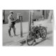 Een postbode met een Flying Merkel motor die brieven van een brievenbus verzamelt. 1909.
