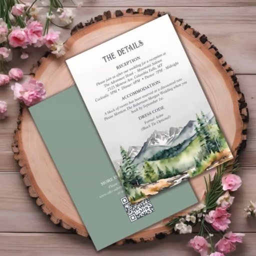 Dit prachtige rustieke avonturenmenu begint met een waterverf geschilderd berglandschap, ideaal voor herfst, herfst, winter of huwelijksbestemming. Personaliseer het met de details van je trouwdag.
