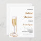Een moderne, stijlvolle en glamoureuze uitnodiging voor een Parels en Prosecco Vrijgezellenfeest. Een witte achtergrond met een glas, fluit met gouden bubbels en parels. De naam is geschreven met een modern handgeschreven stijlschrift. Personaliseer en voeg uw partijgegevens toe. 1 vel = 1 uitnodiging bedrukt rand tot rand.