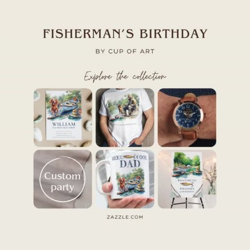 Ambiance d'anniversaire de pêche pour adultes. Illustration aquarelle aux couleurs vives. Cliquez sur le bouton "customiser plus loin" si vous souhaitez réorganiser et formater le style et le placement du texte. Le produit correspondant se trouve dans Fishing Birthday Collection. Note : Photo est AI créé s'il vous plaît échanger avec votre Photo.
