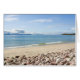 Een eenzame Atlantische golf breekt op een zomerstrand bij Mulrany Strand bij Westport, County Mayo, aan de westkust van Ierland. De lege wal is bezaaid met grote kieuwen rond de klinkende oceaan, en blauwe bergen gleam op de slechte horizon.