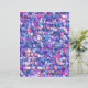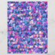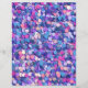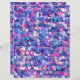 Lagen van een ronde confetti in paars, turquoise, blauw en roze.