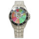 Hoofdtelefoons omringen een mandala met muziek thema lagen, waaronder gitaar en standaard bladmuziek, een equalizer, geluidsgolven, en een plaat getiteld "Music of Life". Of u nu zelf muziek speelt of gewoon geniet van luisteren, dit ontwerp moedigt u aan om "het te spelen." Dit horloge is verkrijgbaar in verschillende maten, kleuren en stijlen, inclusief maten voor zowel kinder als volwassen.