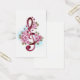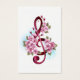 Pink treble clef with delicate, detailed pink Japanese cherry blossoms against white background painted over with light blue paint Blooming pink sakura.
