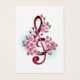 Pink treble clef with delicate, detailed pink Japanese cherry blossoms against white background painted over with light blue paint Blooming pink sakura.