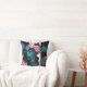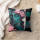 Composición más expresiva y abstracta: rostro femenino con contrastes bicolor, trazos fluidos, manchas y líneas que generan movimiento y profundidad. La flor central actúa como sello botánico de la colección, manteniendo la estética neon teal & pink para una línea uniforme en cojines, sudaderas y pósters.