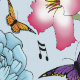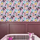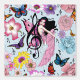 Een schattig klein sprookje allemaal in het roze met muzieknoten, bloemetjes en vlinders in een achtergrond van blauw