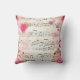 Kussen met een elegant en nostalgisch ontwerp. Muziekblad versierd met een groot roze hart en roze rozen en wilde bloemen rond de randen.