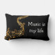 Klassieke muziekthemakussens met gouden gekleurde muzieknotenschaal en tekst die zegt dat Muziek Mijn leven is. Ontworpen voor een muzikant, muziekliefhebber, of geef dit als cadeau voor je muziekleraar.