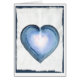 Dit schilderij van de waterverf is gemaakt op handgemaakt papier dat met de hand naar de juiste grootte is verscheurd om de textuur en kwaliteit van het papier te benadrukken. Het blauwe hart symboliseert een menselijk lichaam, waarin de donkere of dichte buitenlagen het licht van de ziel omhullen. Wanneer het binnenste zelf wakker wordt en opent voor verheven spirituele doelstellingen, kan het licht van boven het hart ingaan en het licht binnen verhogen. Hoewel de spirituele vooruitgang vaak uitdagende emoties kan brengen, kan het ook een zacht proces zijn, zoals aangetoond hier door het zachte witte licht dat in een dunne stroom van witte verf wordt geschilderd en de pastelkern van roze en bleek blauw binnen het donkere buitenhart.