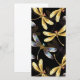 Naadloos patroon met goud, sieraden, glanzende libellen met gedetailleerde, glinsterende vleugels op een zwarte achtergrond. Gouden libel.