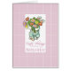 Stuur je babysitter een speciaal boeket met zegeningen dit paasseizoen! De zachte roze achtergrond zet de bloemen van het konijnenhuis af.