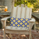 Nachtblauw, mosterdgeel, wit, modern buitenkussen
