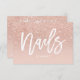 Een elegant modern, stijlvol visitekaartje met een cadeaucertificaat voor nagels met elegant script, stijltypografie in wit, op een faux roos goudglitter en pastel zwarte roze trendy en elegante achtergrond. Als u een aanpassing nodig hebt, aarzel dan niet om contact met mij op te nemen