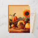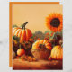 Grote zonnebloem stijgt boven oranje pompoenen in dit najaar.