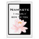 Un graphisme noir et blanc équilibré avec une fleur de lotus rose à l'intérieur et les mots Namaste, je vous salue humblement. Namaste est ce que l'on dit quand on rencontre un autre être humain ; avec des mains de prières et un arc, nous nous inclinons devant l'esprit que nous partageons en nous tous.