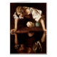 Narcissus - Italiaans Barokke Painting door Caravaggio. Narcissus of Narkissos (Grieks: Ν van de onder de naam "κικί? ..."), mogelijk afgeleid van de "ΗΣ", dat wil zeggen: "Slaap, verdoofd", in de Griekse mythologie was een jager van het gebied Thespiae in Boeotia, die bekend stond om zijn schoonheid. Hij was uitzonderlijk trots, in die zin dat hij degenen die van hem hielden, teleurstelde. Als goddelijke straf werd hij verliefd op zijn eigen reflectie in een zwembad, niet realiserend dat het slechts een afbeelding was, en hij verspilde naar de dood, omdat hij de schoonheid van zijn eigen reflectie niet kon achterlaten. Michelangelo Merisi da Caravaggio (1571 - 1610) was tussen 1593 en 1610 een Italiaanse artiest die actief was in Rome, Napels, Malta en Sicilië. Zijn schilderijen, die een realistische waarneming van de menselijke staat combineren, zowel fysiek als emotioneel, met een dramatisch gebruik van verlichting, hadden een formatieve invloed op de Barokse schilderschool.