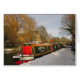 Narrowboot en kerk in de sneeuw bij Shipton op Cherwell, het kanaal van Oxford.