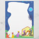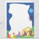 De drie koningen die een bezoek brengen aan de baby jesus die in een boosheid leunen met zijn ouders Mary en Joseph die toekijken. Het mooie kerstbriefhoofd-paginalangdesign.
